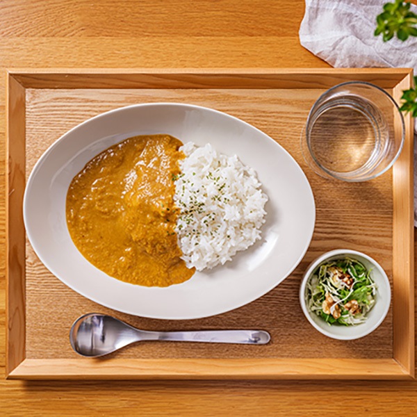 鯛出汁の旨味と8種類以上のスパイスが効いたレトルトとは思えない濃厚なカレーです。