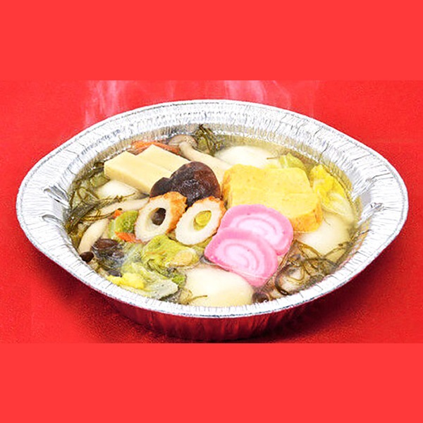 白菜・牛蒡・人参・椎茸・こうや豆腐・鶏モモ肉・なると蒲鉾・刻み昆布玉子焼き・杵つき餅