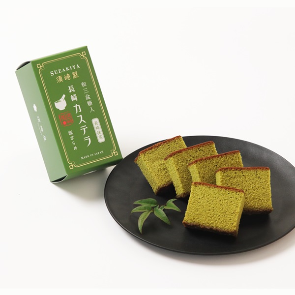 濃厚な五三焼かすてらに長崎の茶所 東彼杵産の抹茶でやすらぎの香りを加えた長崎抹茶。