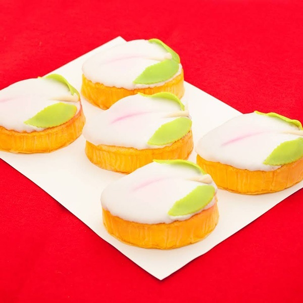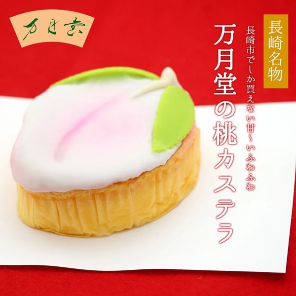 当店の桃かすてらは、熟練の職人が厳選した小麦粉やこだわりの卵を使用し、ふっくらと焼き上げた優しい味わいの生地に一つ一つ丁寧にやわらかいすり蜜をかけて仕上げた可愛らしく美味しいお菓子です。