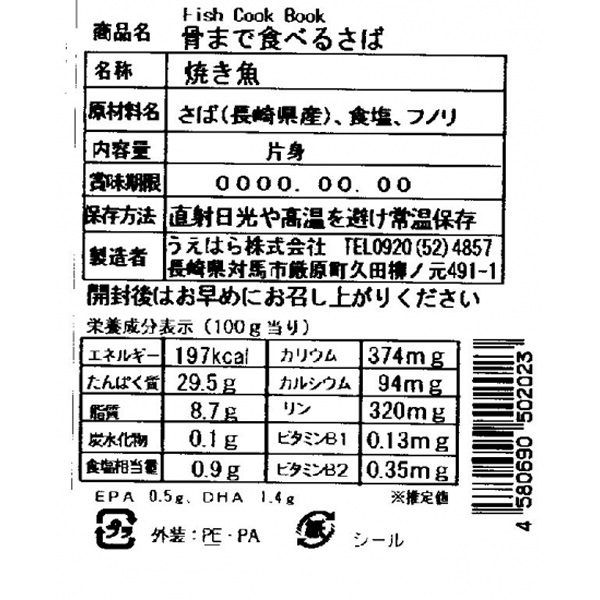 マサバ(長崎県産)、食塩、フノリ