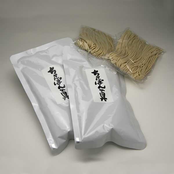 特製スープと調理済み具材がレトルトパックになって付属しているちゃんぽんセットです。