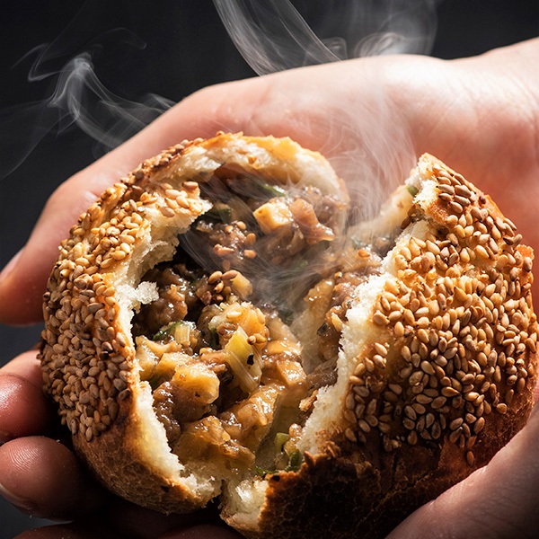 スパイシーな肉餡とタケノコ、たまねぎをカリッとしたパイ生地包みました。