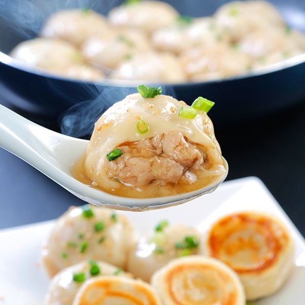上海の人気ファストフード焼小籠包。具材の風味を含んだたっぷりのコラーゲンスープが若い女性をはじめとして幅広い人気です。