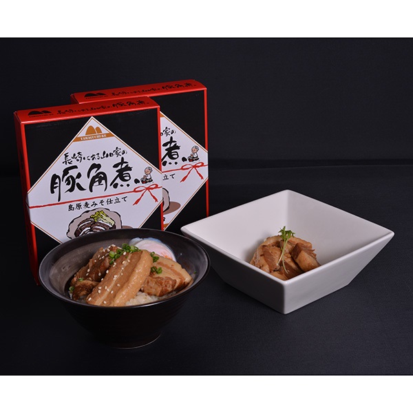 長崎名物豚角煮。柔らかく煮込んだ豚肉から溶け出した旨みと島原麦みそ仕立てでコクと深みをプラスた家庭の味に仕上げました。柔らかく煮込にんだ角煮はそのまま食すのはもちろん、贅沢に角煮チャーハン・角煮ラーメンなどアレンジしてもとてもおいしくお召し上がりいただけます。