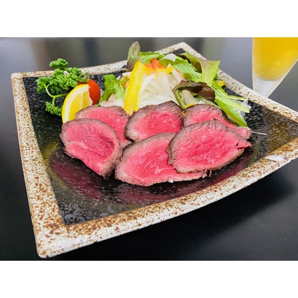 【あぶり焼】市販されているローストビーフとは全く違う味で、独自の製法味付けにより一本一本丁寧に炙りあげた匠の絶妙な火加減が味の決め手。