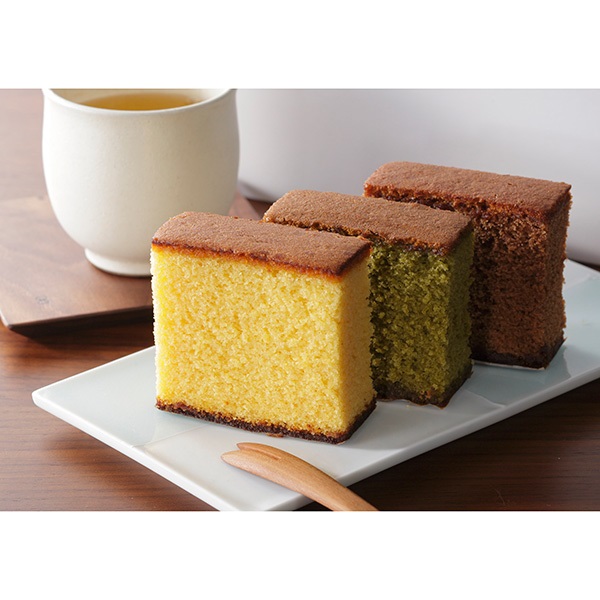 3種類の風味を詰め合わせた長崎カステラ。
