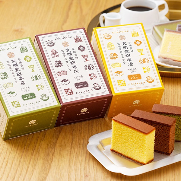 文明堂総本店 カット包装カステラ 6箱入(プレーン×2箱・チョコレート×2箱・抹茶×2箱)